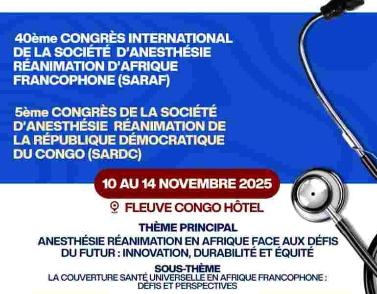 STAARMUC (Société Togolaise d'Analgésie, d'Anesthésie, de Réanimation, de Médecine d'Urgence et de Catastrophe - Togolese Society of Analgesia, Anesthesia, Resuscitation, Emergency and Disaster Medicine) is pleased to announce and encourage participation in a key scientific event for the future of our specialties in Francophone Africa: the 40th International Congress of SARAF (Société d’Anesthésie Réanimation d’Afrique Francophone - Society of Anesthesia and Resuscitation of Francophone Africa), which will be held jointly with the 5th Congress of SARDC (Société d’Anesthésie Réanimation de la République Démocratique du Congo - Society of Anesthesia and Resuscitation of the Democratic Republic of Congo).